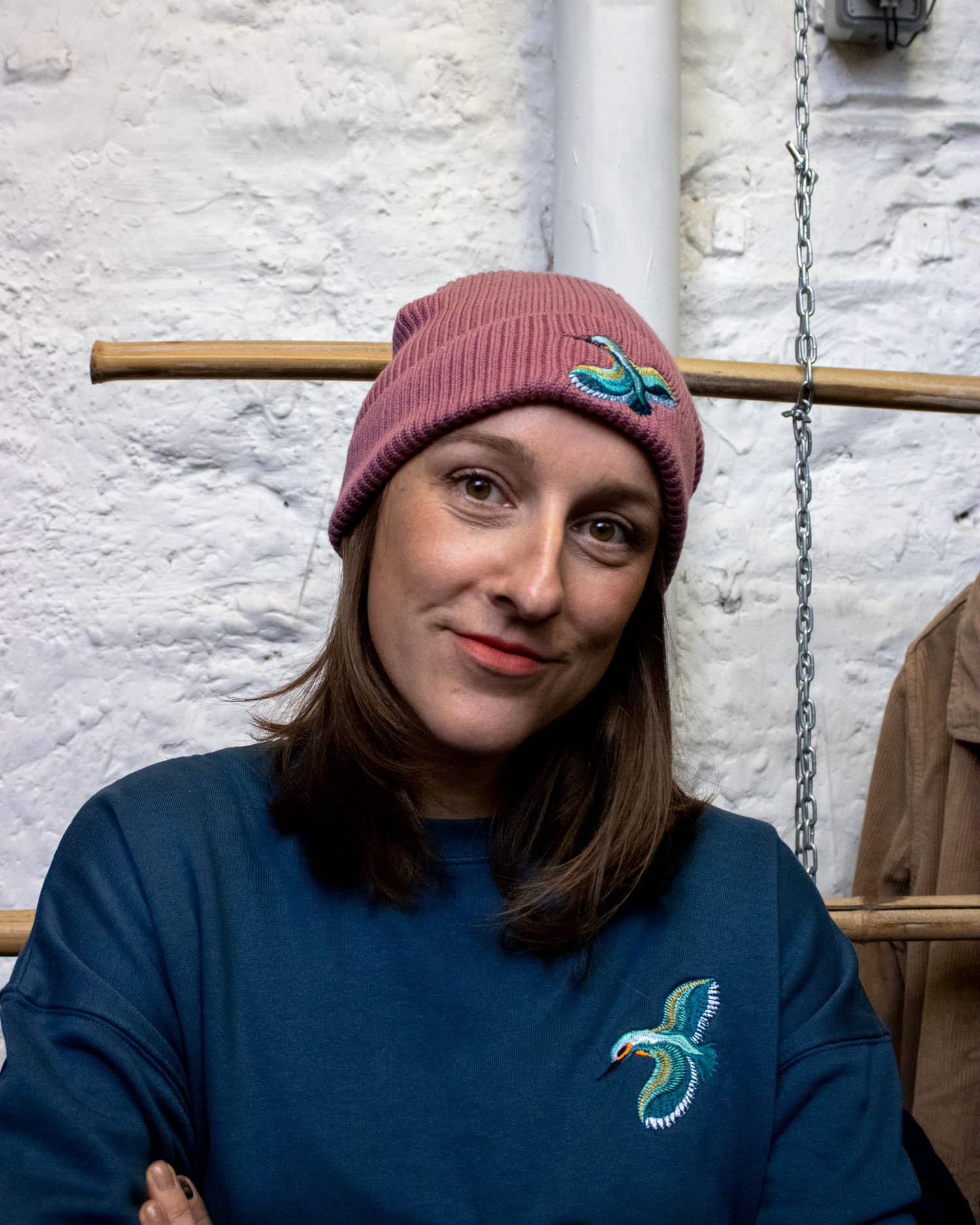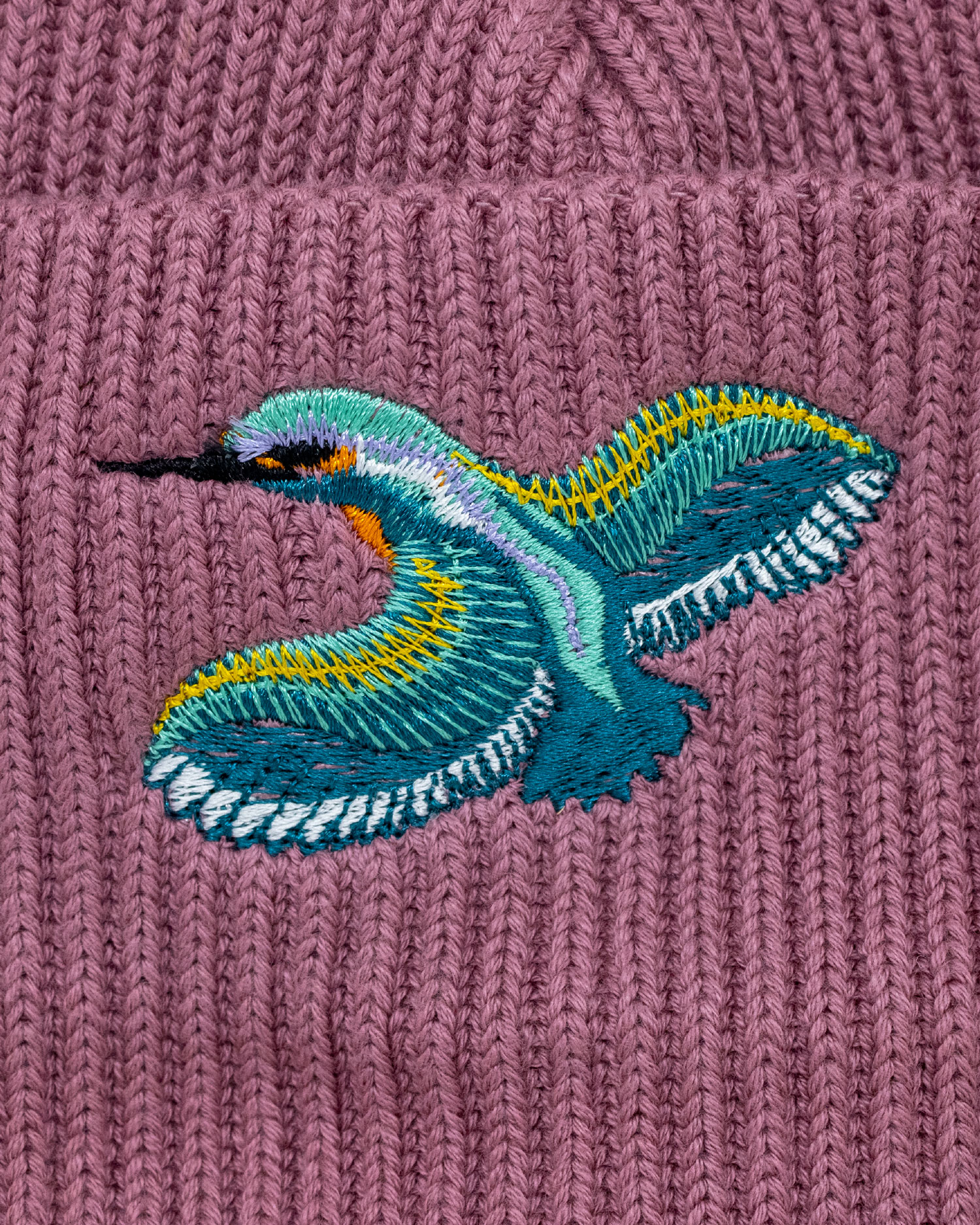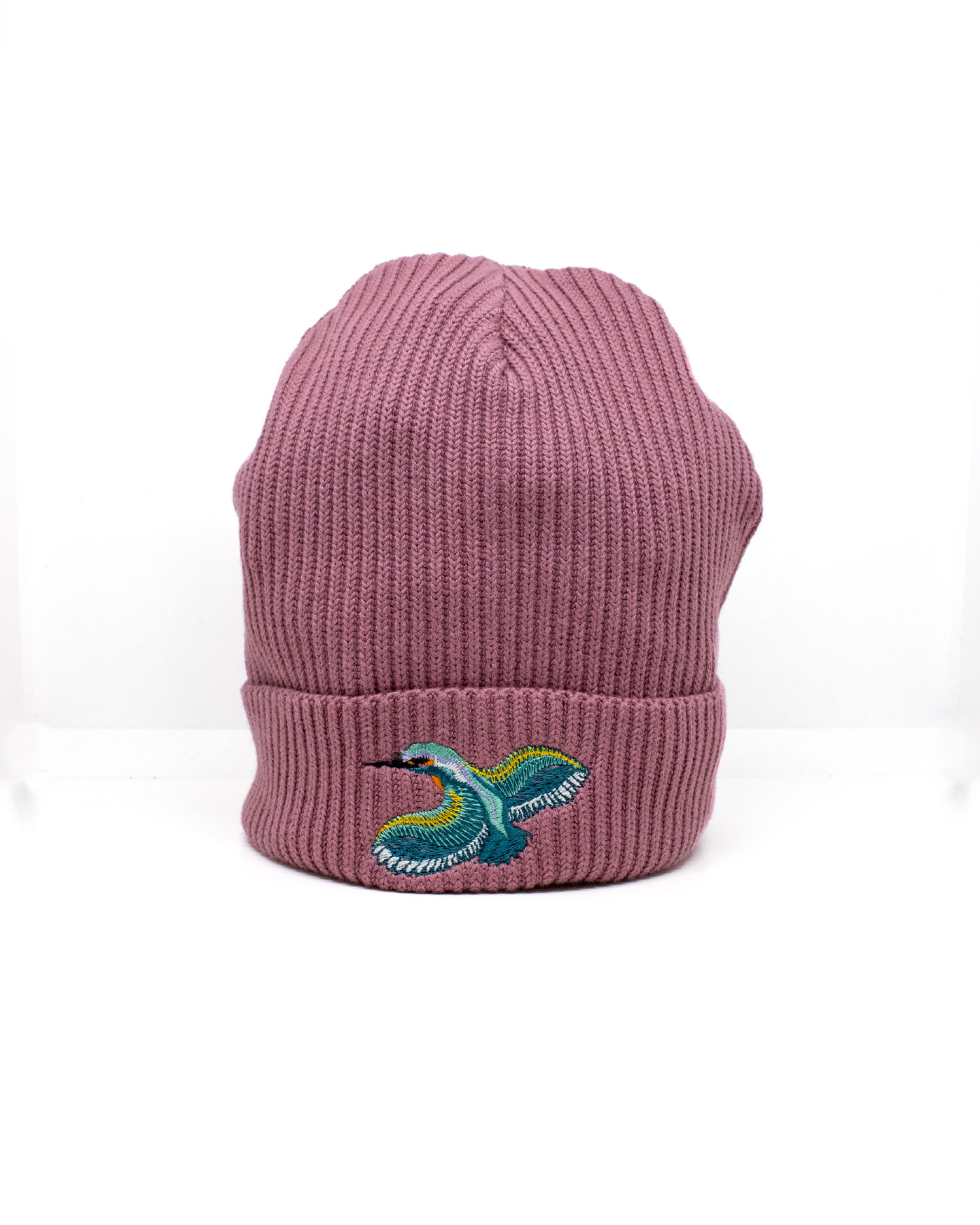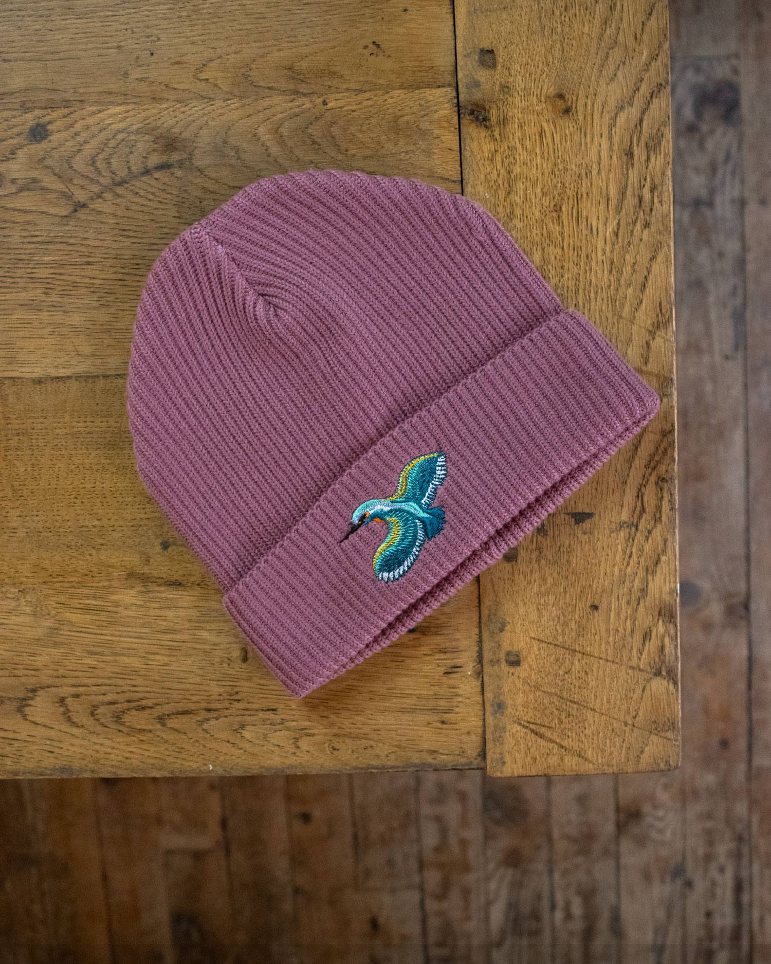 Laissez-vous séduire par notre bonnet Martin-Pêcheur : un tricot côtelé doux, orné d’une broderie finement réalisée dans notre atelier à Angers.