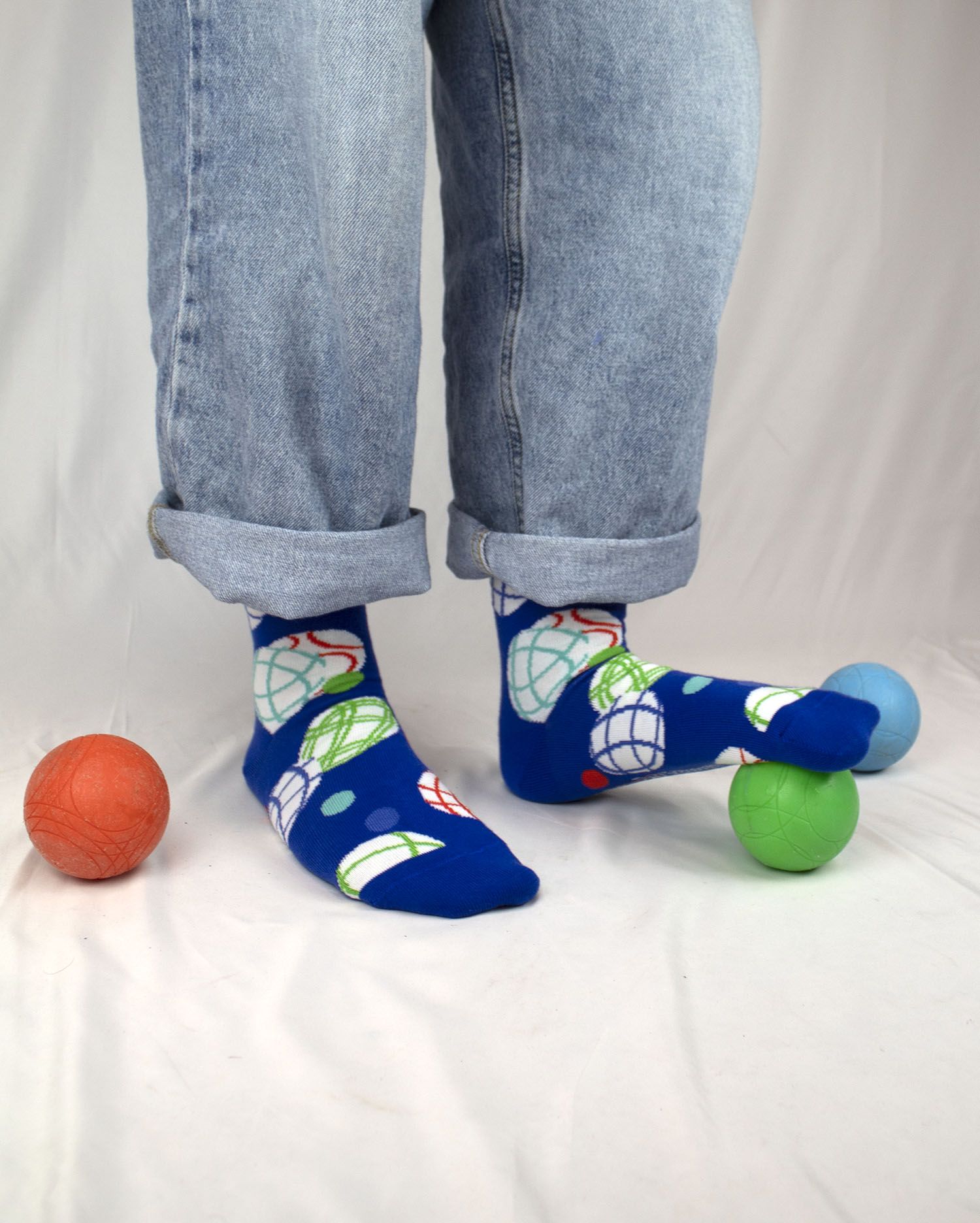 Au grand damne de ne pouvoir jouer à la pétanque en semaine! voila les chaussettes pétanques ! Prête a vous suivre dans vos moindres déplacements et  assurant une discrétion de la passion de la boule haute en couleurs 🙂